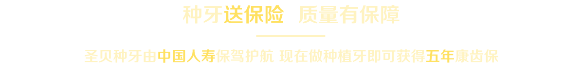 康齿保:中国人寿10000元保额/颗为保障种植牙齿质量,圣贝牙科联合中国人寿推出种植牙保险。凡在成都圣贝种植牙齿的患者,将获得非意外脱落5年质保(不含特价项目),种植牙脱落(意外伤害或人为因素除外)由中国人寿对种植牙修复费用(包含种植体和牙冠)予以全额报销。